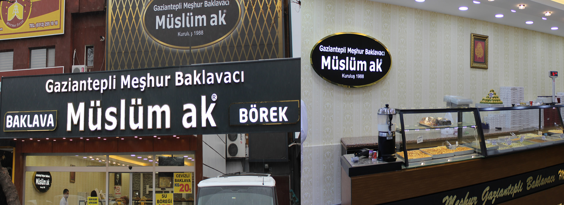 Müslüm Ak Baklava 1988 Yılından bu yana Gaziantep Baklavasının Enfes Lezzetini Siz Çok Kıymetli Ankara Halkının Damak Zevkinize Sunuyoruz. Ürettiğimiz baklava ve tatlı çeşitlerini siz değerli müşterilerimizin beğenisine sunan bizler, sağlıklı ve kaliteli lezzet üretmeyi amaç edinerek hijyenik ortamlarda size hizmet etmenin gururunu yaşıyoruz. Müslüm Ak Baklava markasının Dünya'ca meşhur hale gelebilmesi için büyük özveri ile çalışan, büyük emek ve özenle hazırlanıp sunulan baklava ve tatlıların en büyük sırrı; deneyimi, işe duyulan saygı ve titizligidir. .. Devamı...